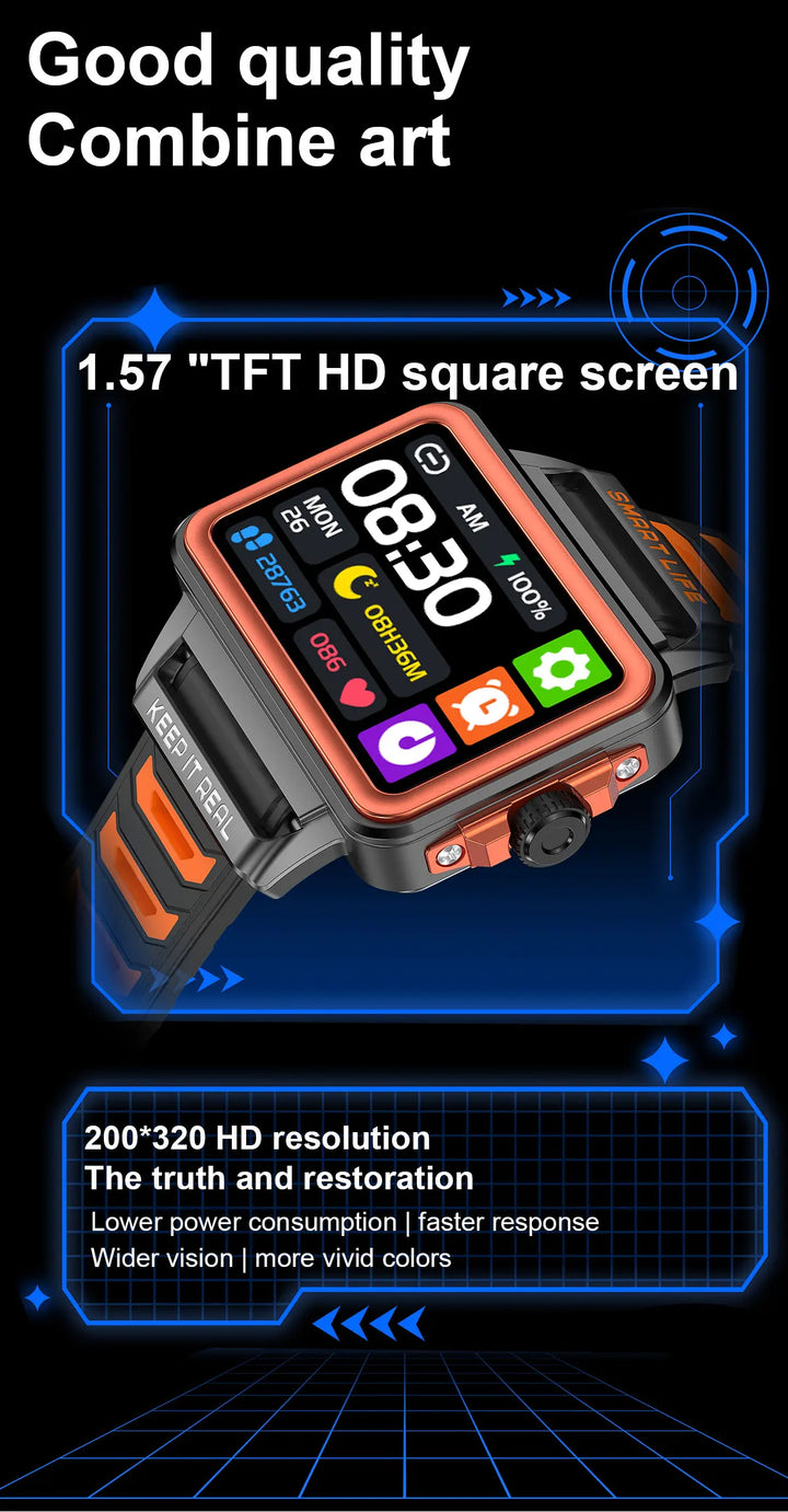 1.57in Smart Watch 2024 New Sport Smart Watch Men Woman Flashlight Waterproof Information Push Smart Bracelet For Android IOS