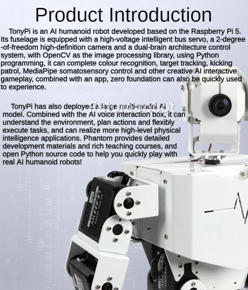 Title: 17 Dof Biomimetic Humanoid Robot TonyPi Object Tracking Intelligent AI Vision Python Programmable Robot for Arduino Programmable