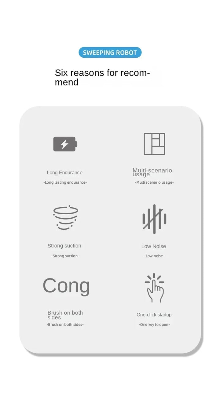 Product accessories: Edge brush * 2; Fiber mop * 1; Charging cable * 1; Magic cloth * 1, cleaning brush * 1