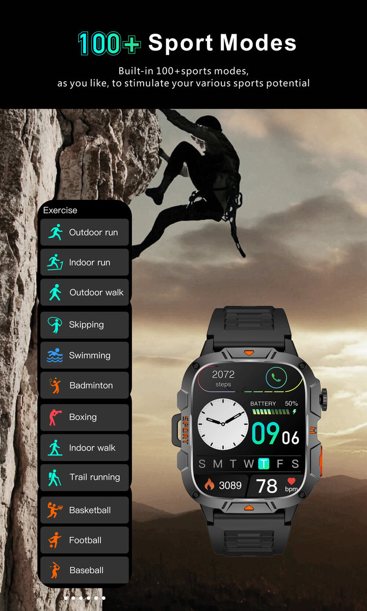 [100+ Sport Modes]: Leuceira sport smartwatch for men can support more than 100 indoor and outdoor sports modes, including walking, running, cycling, jumping rope, badminton, hiking, physical training and so on, which can meet the needs of most sports enthusiasts. Outdoor smartwatch for men will record the exercise data during the exercise, calories burned, steps, distance and more, so that you can see your exercise effect more intuitively and achieve your exercise goals step by step.