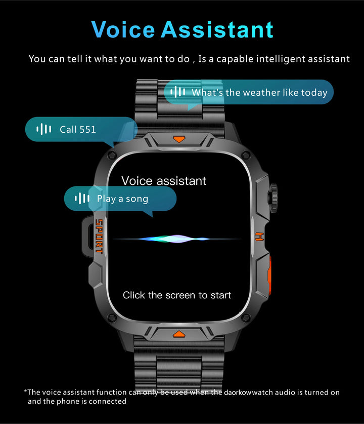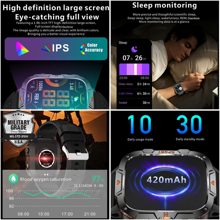 2025 New Smart Watch 3ATM Waterproof 1.96"Full touch Screen New Outdoor Men Sport LED Flashlight 420mAh Large Battery Bluetoot