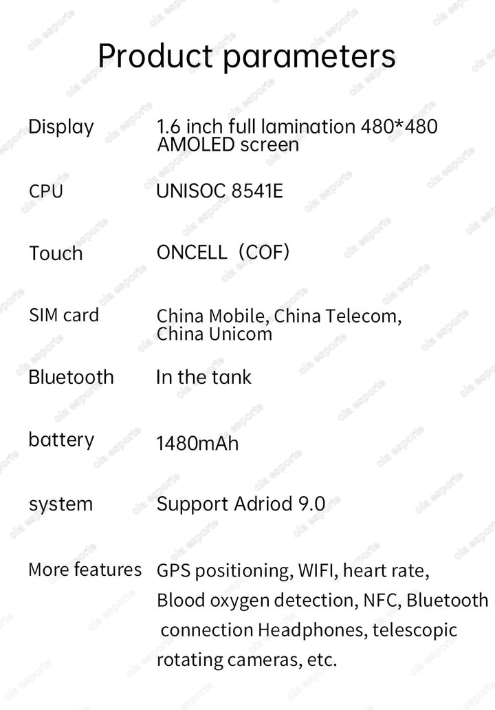 Bluetooth call,5G SIM call,Video call, GPS,NFC,Compass,take photos,picture,incoming call reminder, emergency contact, call record, dial, control of mobile phone music, playing music, step counting, sleep monitoring, heart rate, blood oxygen, sedentary reminder, water reminder, exercise steps, exercise mileage record, calorie consumption and various exercise modes. Pedometer, multi-motion mode, stress test, flashlight, information reminder, stopwatch, music control, playing Bluetooth music, photo control, anti-lost, alarm clock, weather, APP dial push, OTA upgrade, voice assistant, SOS;Women's health, applying QR code
