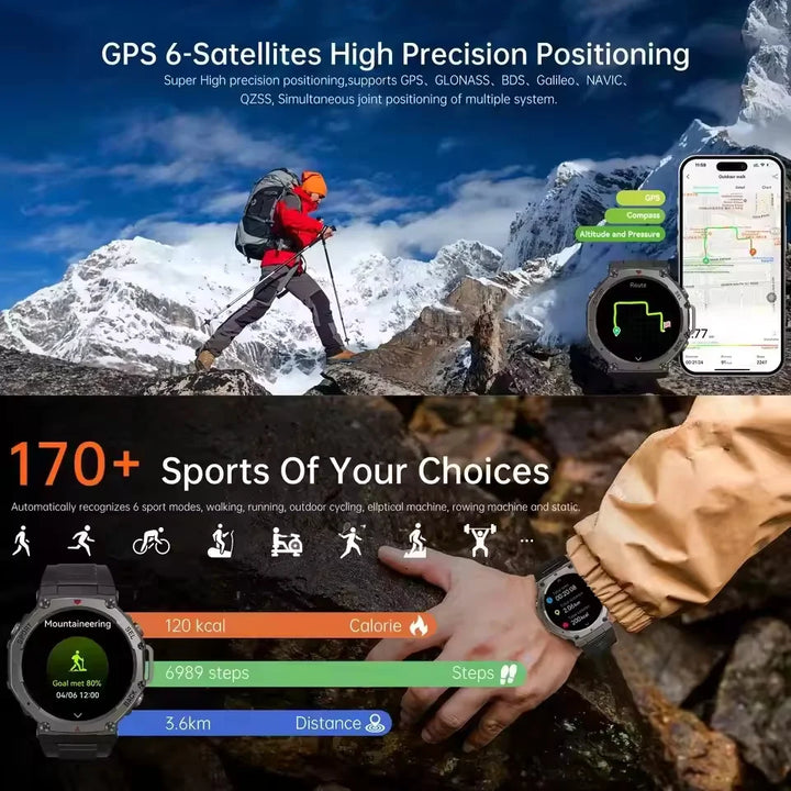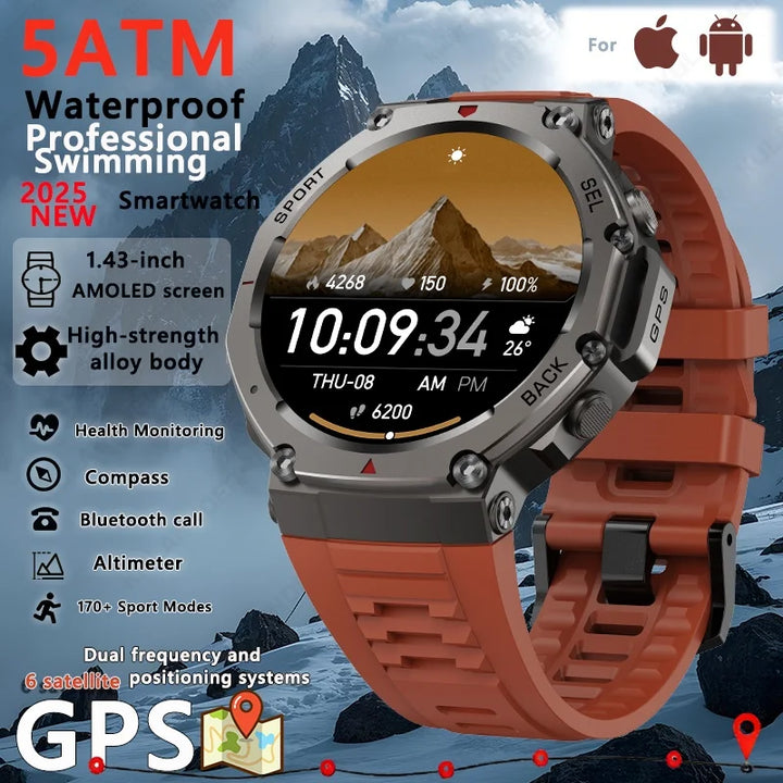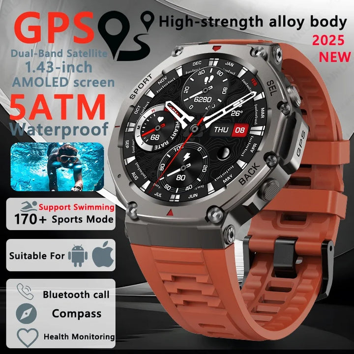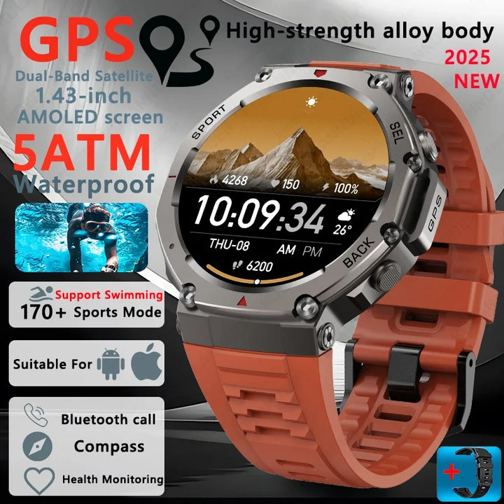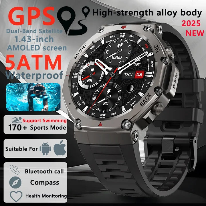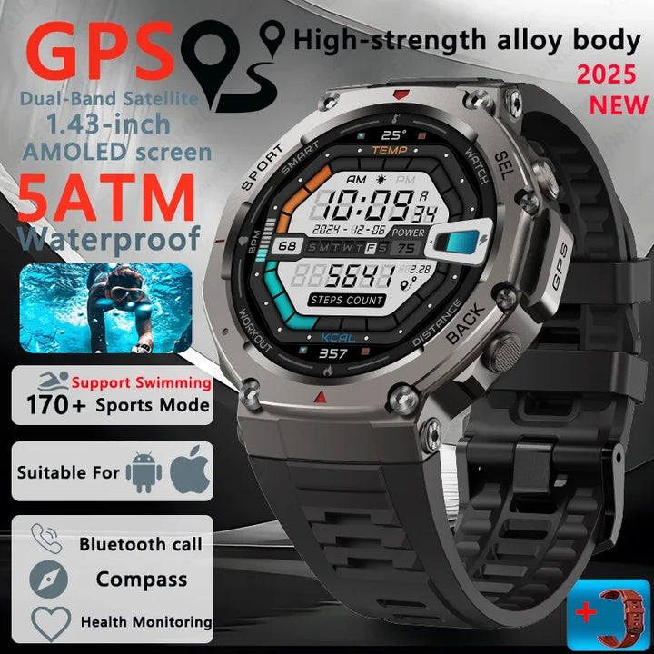 2025 NEW Outdoor Military GPS Smart Watch Men 1.43" AMOLED HD Screen Compass Altimeter Barometric 5ATM Waterproof Smartwatches: Built-in GPS Smart Watch 2025 New for Xiaomi Samsung Military AMOLED Smartwatch Men Waterproof 170 Sport Modes BT Call Bracelet
