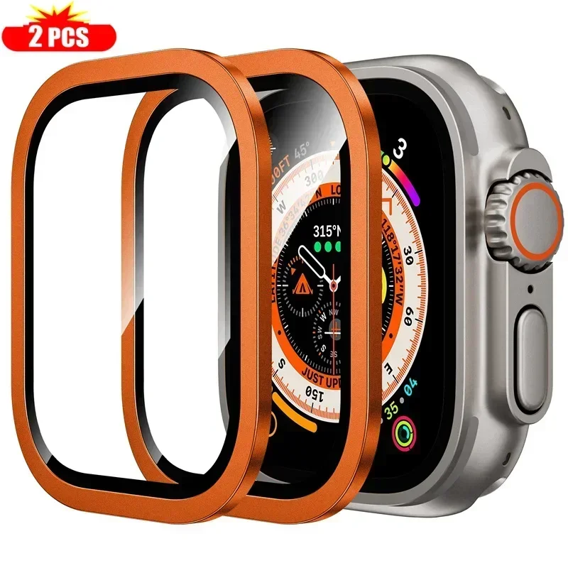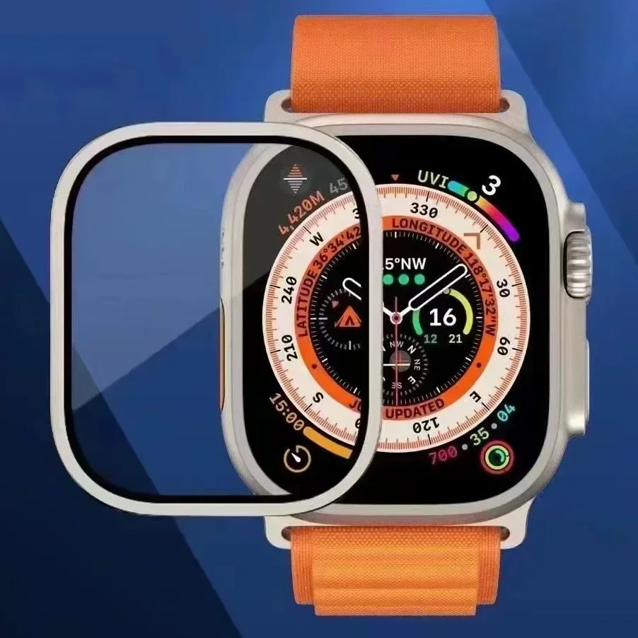 2PCS Tempered Glass for Apple Watch Ultra 49mm Titanium Metal Frame Anti-Scratch film Serie Ultra 2 Screen Protector Accessories