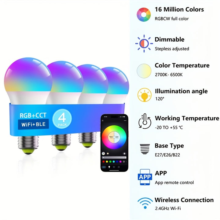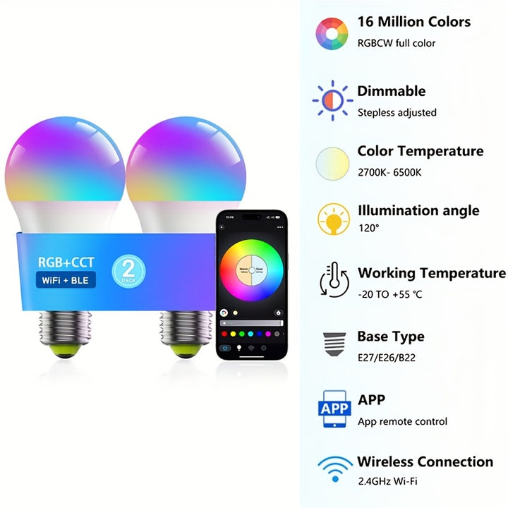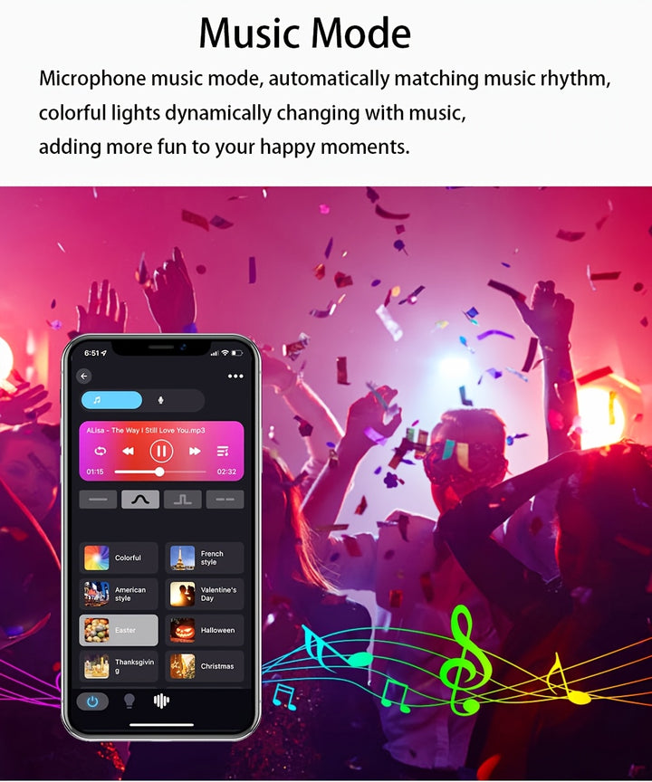 Light Bulb Features: Color Changing;Dimmable;Eye-Friendly;Long Life;Music Sync