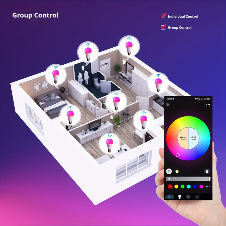 629.92inch Color RGB Music Sync Bulb Smart Home Automation Group Control Party/Wedding Atmosphere Lighting