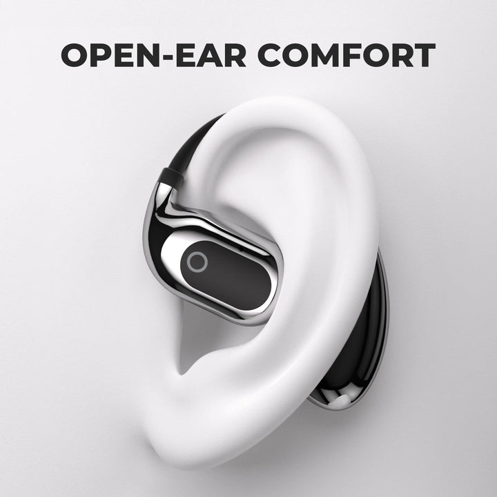 5. New ear comfort design: ergonomic high ear design that conforms to long-term comfort. Smooth portable charging case for a modern look.