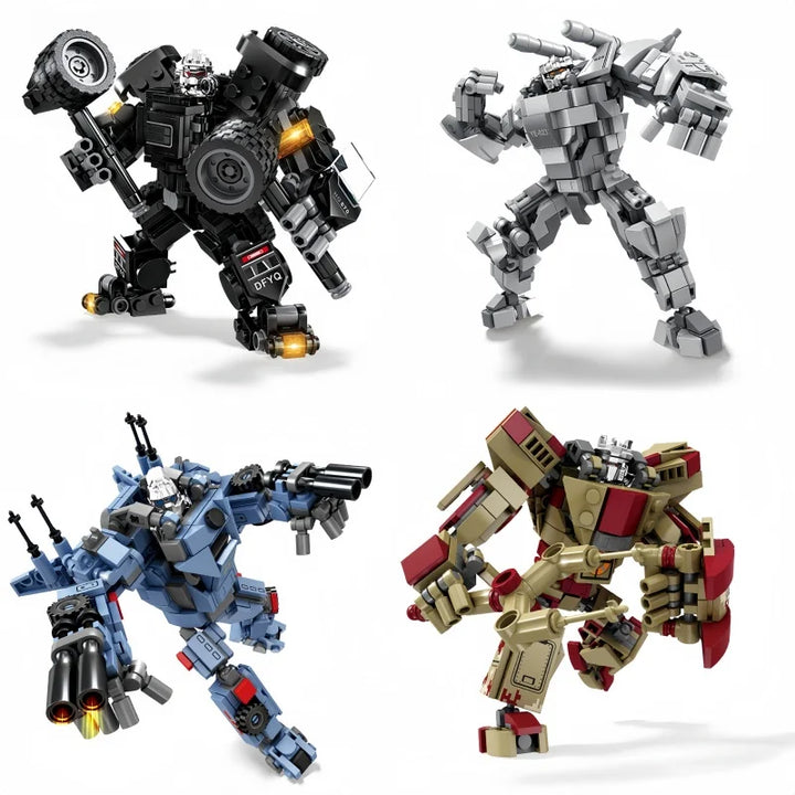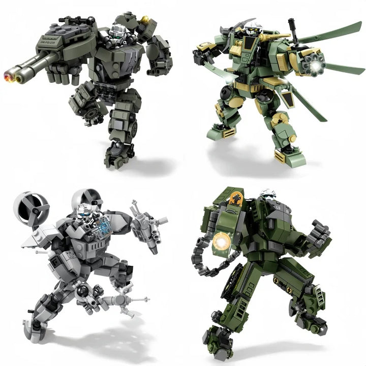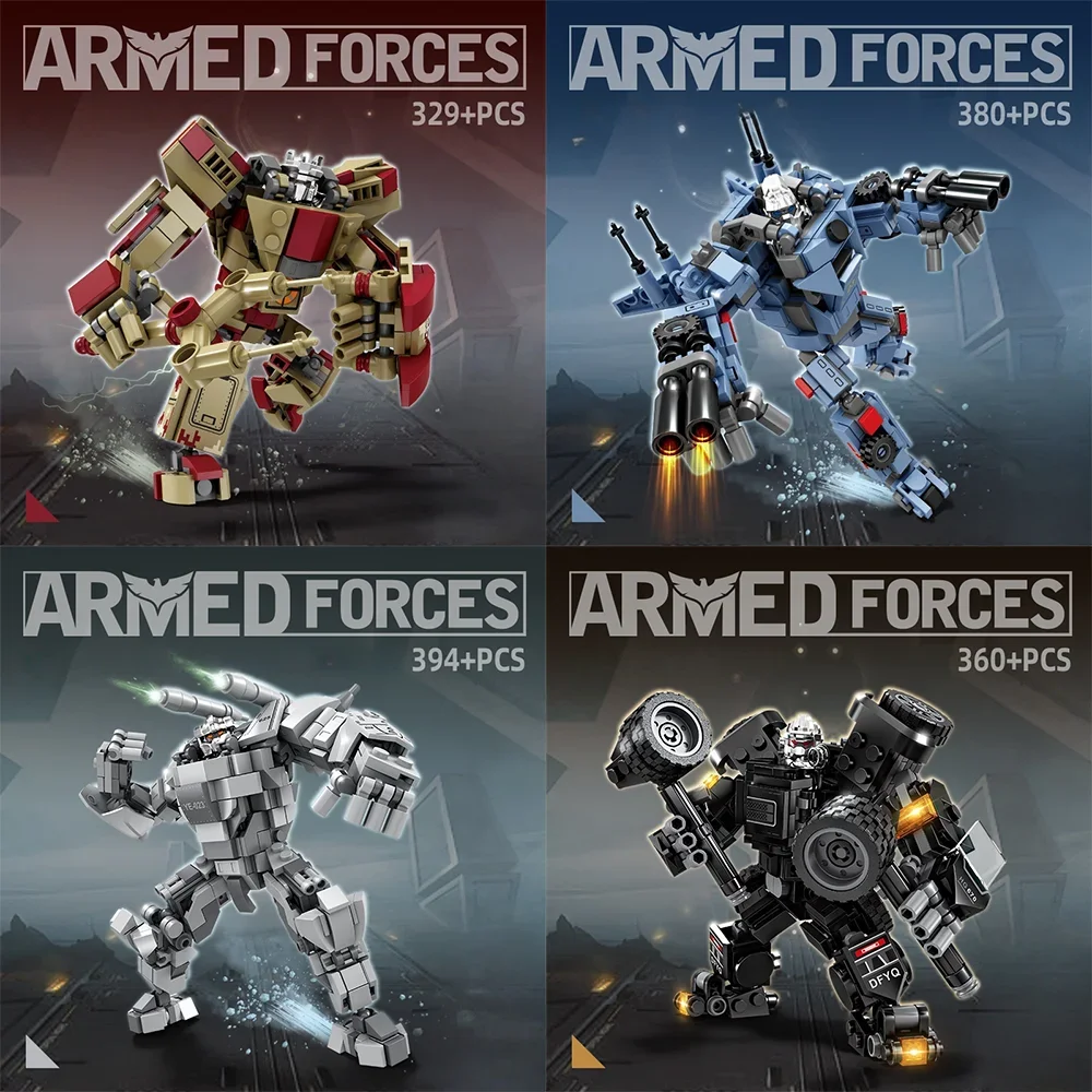 These robotic armed forces mini building block toys feature appealing robot and mecha models, allow for creative construction of armed forces, offer thrilling battle simulations, help enhance fine motor skills, are great for Children's Day gifts, boost social interaction, and are made of long - lasting quality materials.