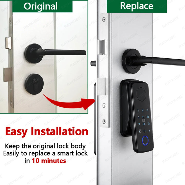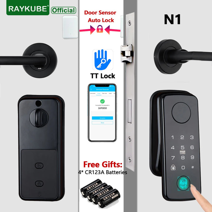 RAYKUBE N1 TT Lock Auto Smart Fingerprint Lock Set with Handle/Door Sensor APP Remote Unlock Easy Install No Punching No Wiring