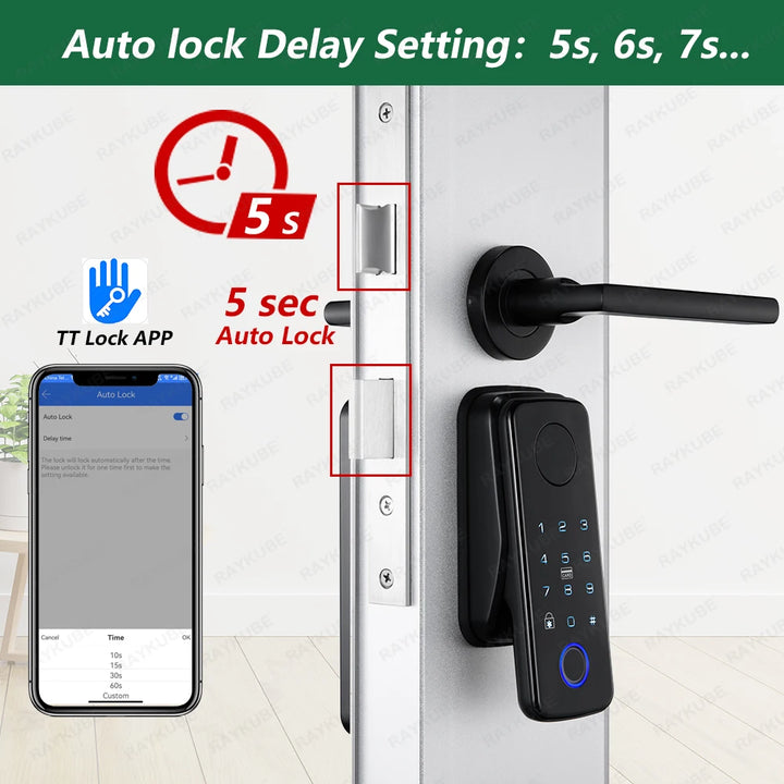 Set timed automatic locking in TT Lock APP, Auto lock Delay:5s, 6s, 7s, 8s, 9s ...