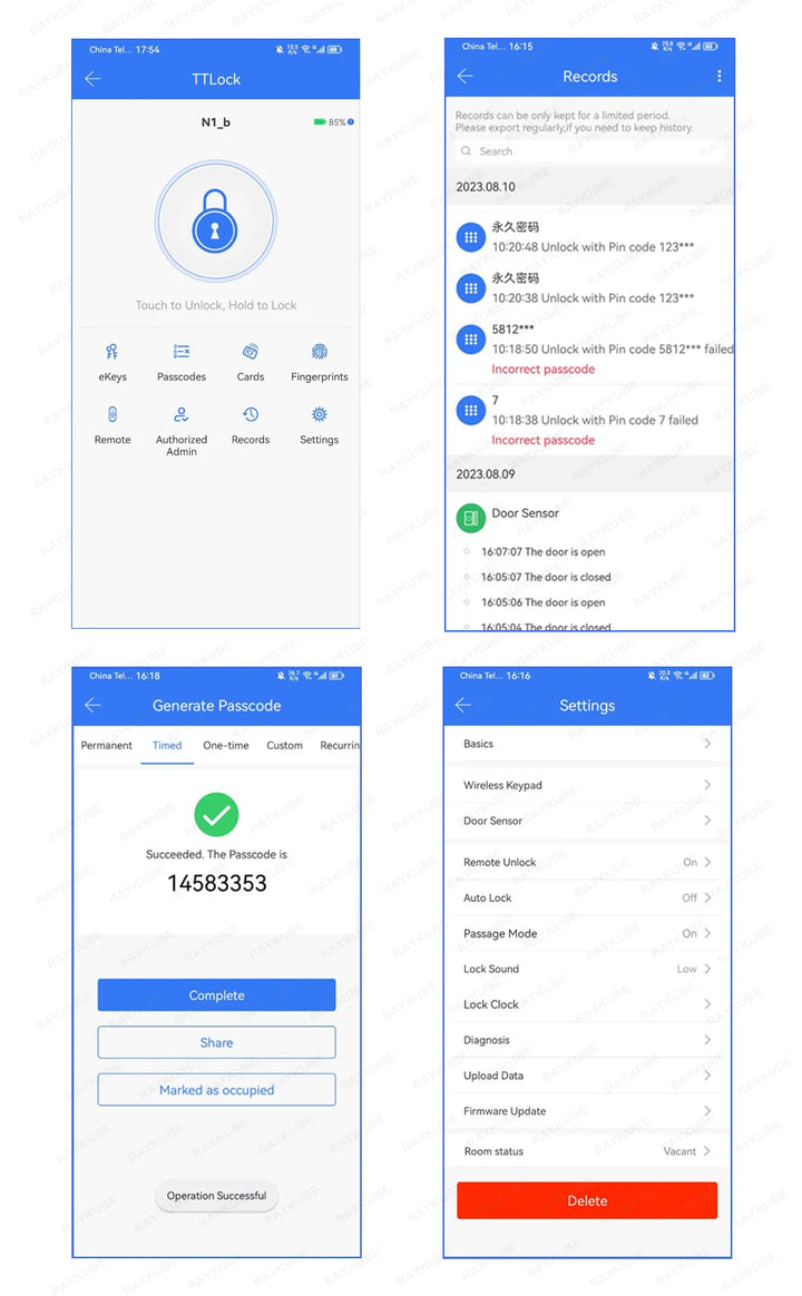Automatic locking: Door sensor assists auto lock; TT APP supports custom delayed locking
