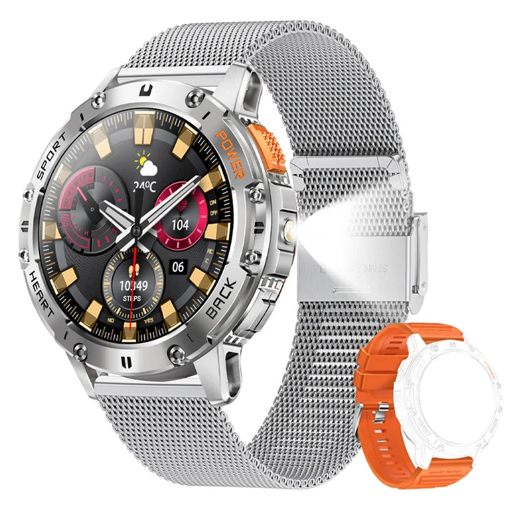 For Android ios New AMOLED Smart Watch Men with Flashlight Sports Waterproof Fitness Tracker Bluetooth Call Smartwatch Man+Box