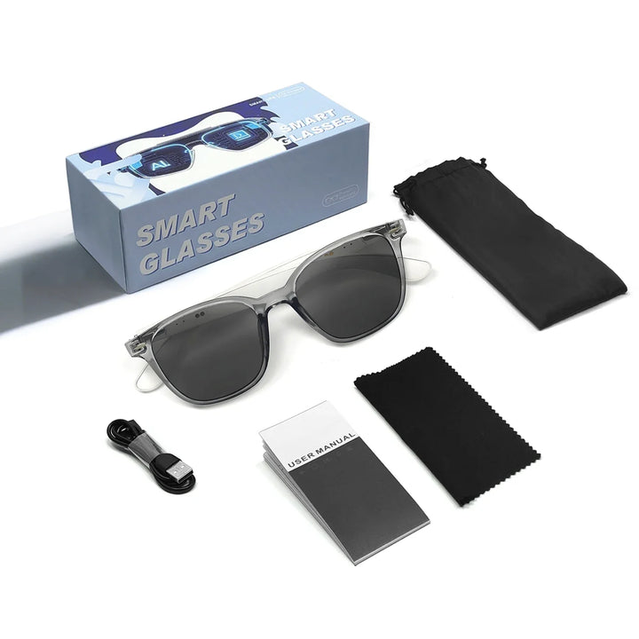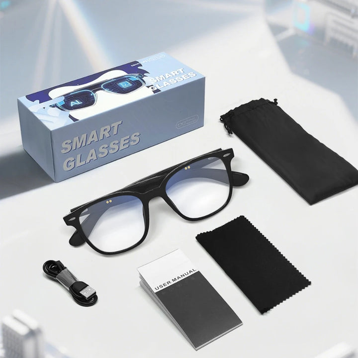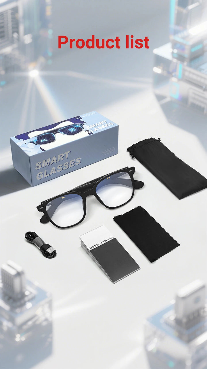 Packing:Smart Glasses charging cable, storage pouch, cleaning cloth, user manual, packaging box