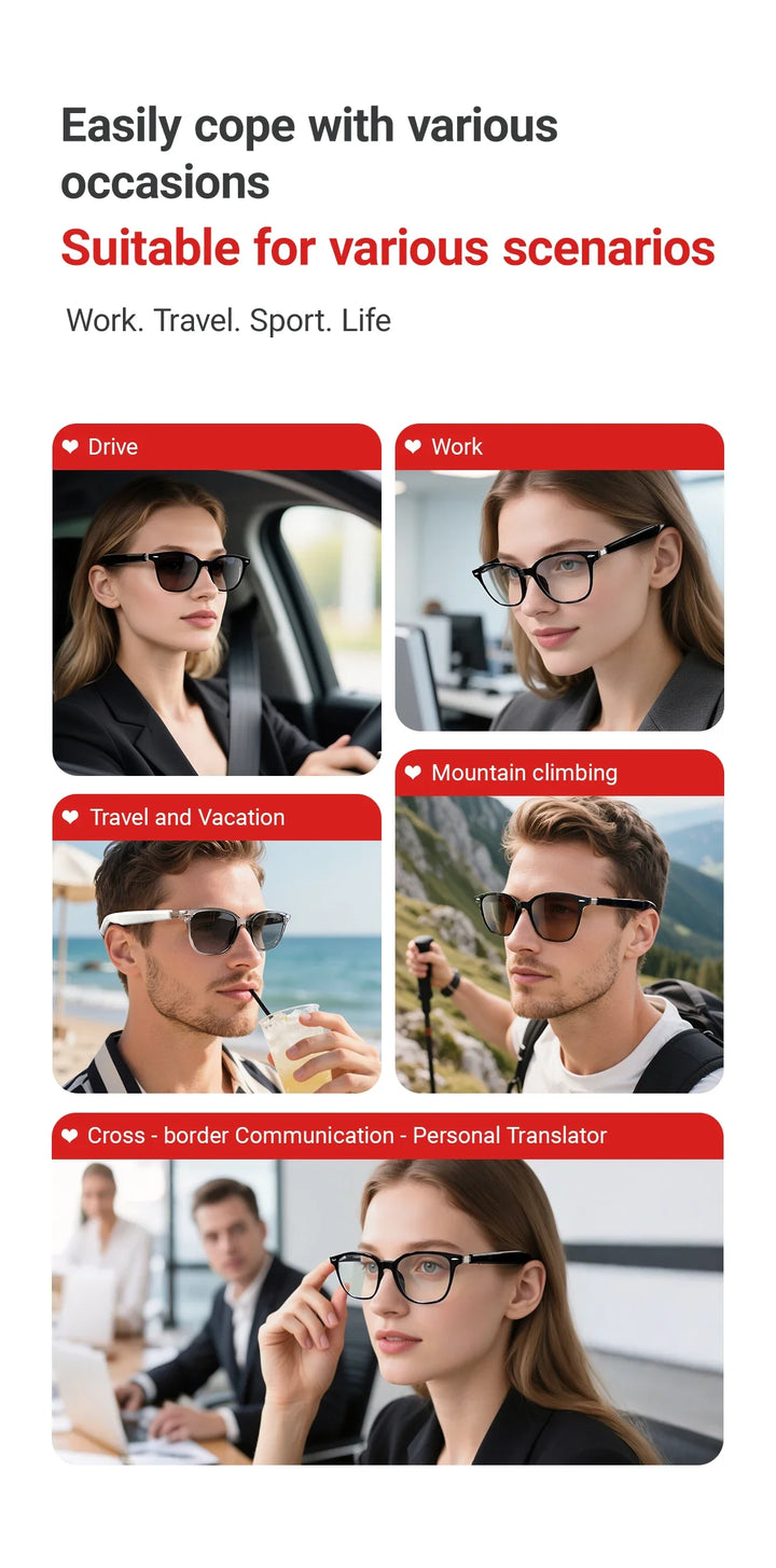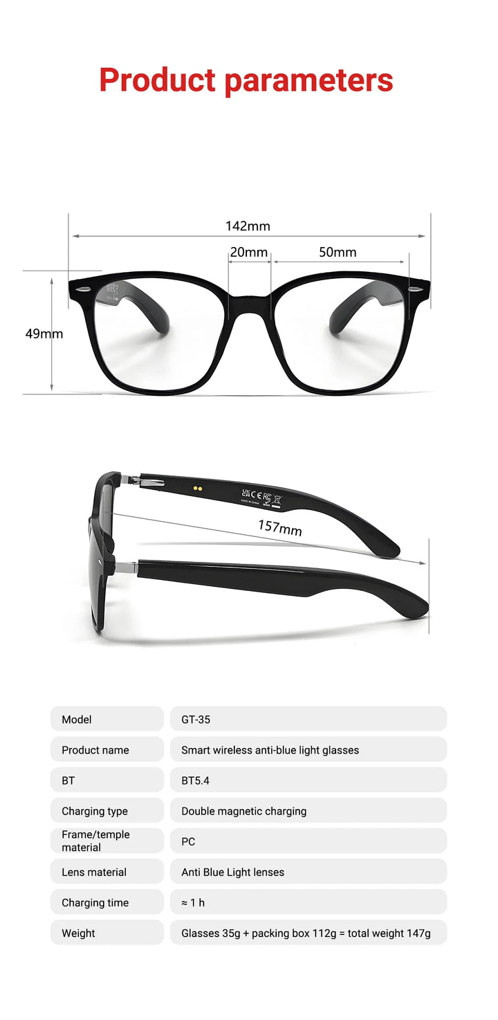 *Smart Glasses Design and Lightweight 35g(excluding lenses): Design has a lightweight 35g made, making it perfect for all-day wear.