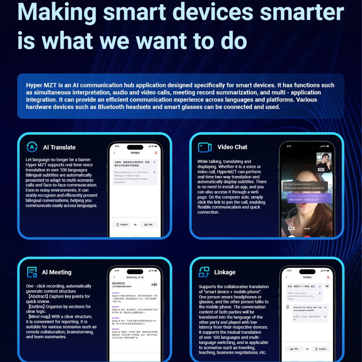 *AI intelligent translation and real-time simultaneous explanation: Global communication is achieved through AI-driven translation, and language barriers are bridged in real time. (NEED Customized)