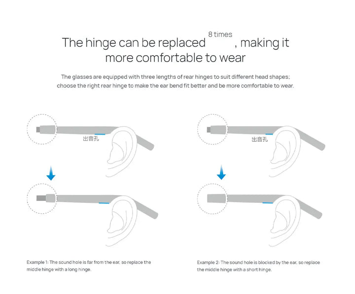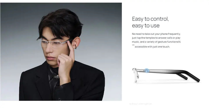 Device control: Tap: Tap the left and right temples twice to answer/hang up the call, pause/play music; support custom settings to wake up the voice assistant