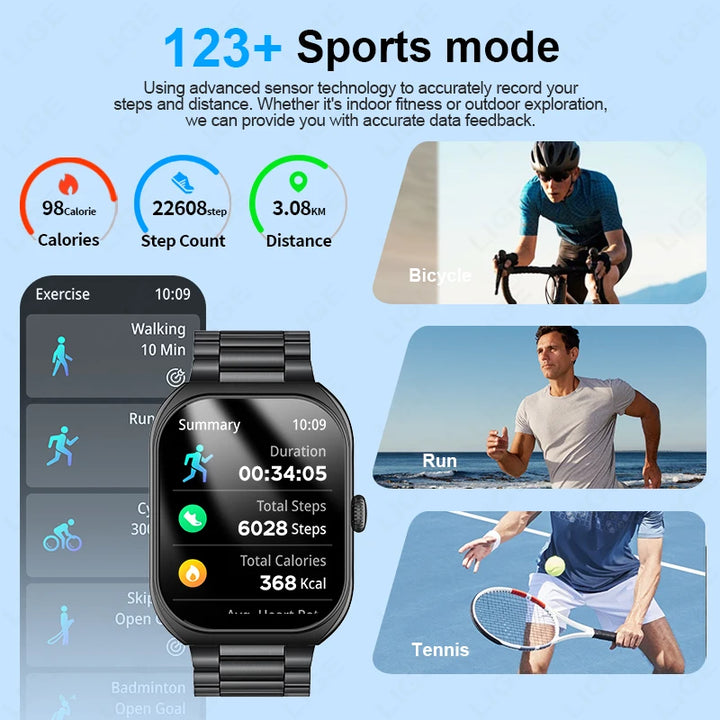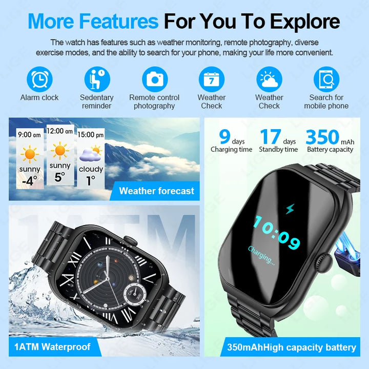 LIGE New 3D Curved Screen Smart Watch 2025 Smartwatch 2.01" Bluetooth Calls Watches Men Women Fitness Bracelet Custom Watch Face