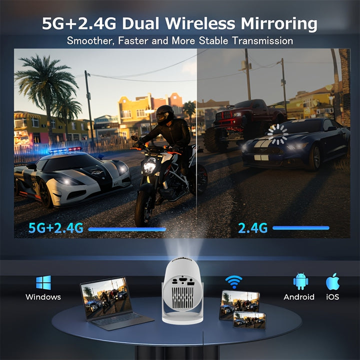 Mini Portable Projector, 1080P Video Smart Projector with WiFi And BT5.0, 180° Rotation, Outdoor Camping, Home Theatre Video Projector, Smart Home Device | Stylish White Projector, Perfect Gift