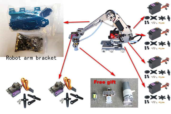 Frame with servos= 1 set 6 dof robot arm Frame+ 4pcs MG996 servos+ 2pcs mg90 servos + suction cup(Free gift)