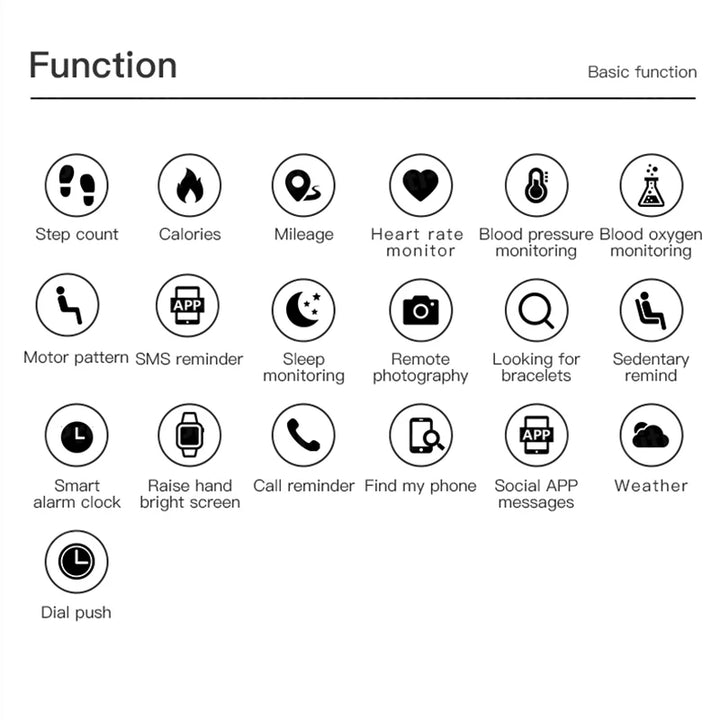 Function: Shock Resistant,Passometer,fitness tracker,sleep tracker,Mood Tracker,Message Reminder,Call Reminder,REMOTE CONTROL,Push Message,Altitude Meter,tourbillon,Big Three Needles,24 hour instruction,Chronograph,Alarm Clock,Small Second,World Time,Calorie Counter,Permanent Calendar,Multiple Time Zone,Power Reserve,PRAYER,GMT Two Places,Perspective Window,week,Phase of the Moon,Speed Measurement,Month,Heart Rate Tracker,Interactive Music,Noctilucent,Calendar,Lighting,Countdown,Calculators