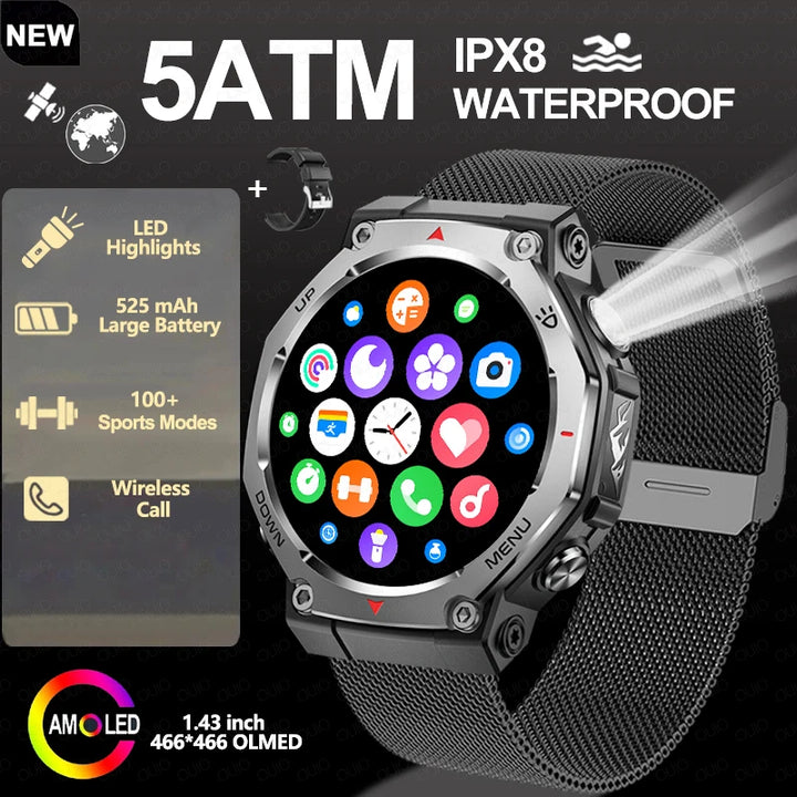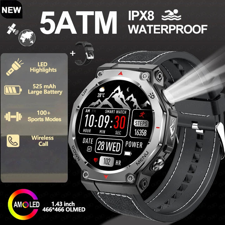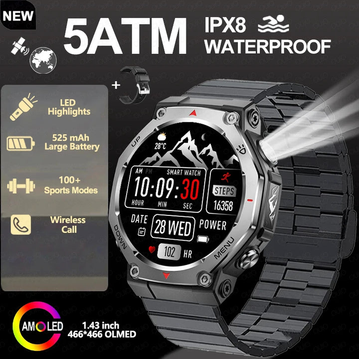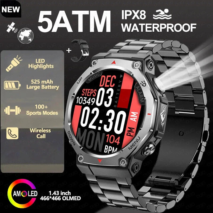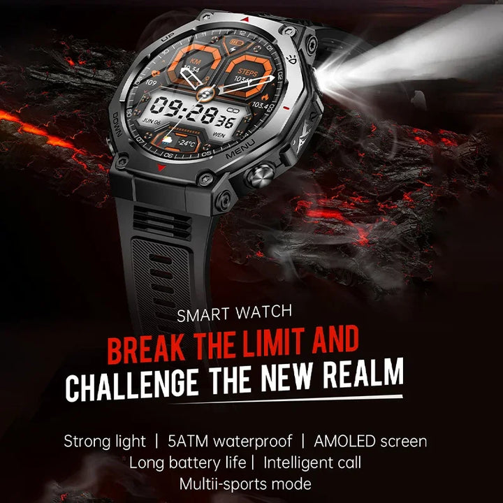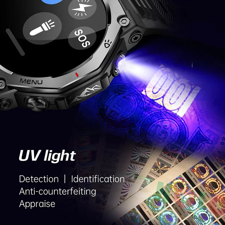 New Smart Watch Outdoor LED/UV Lights 525mAh Battery 100+Sports Mode Heart Rate 3ATM Waterproof Bluetooth Call Men Smart Watch