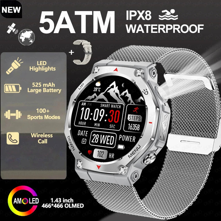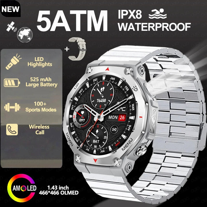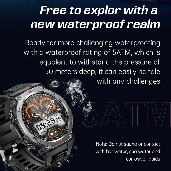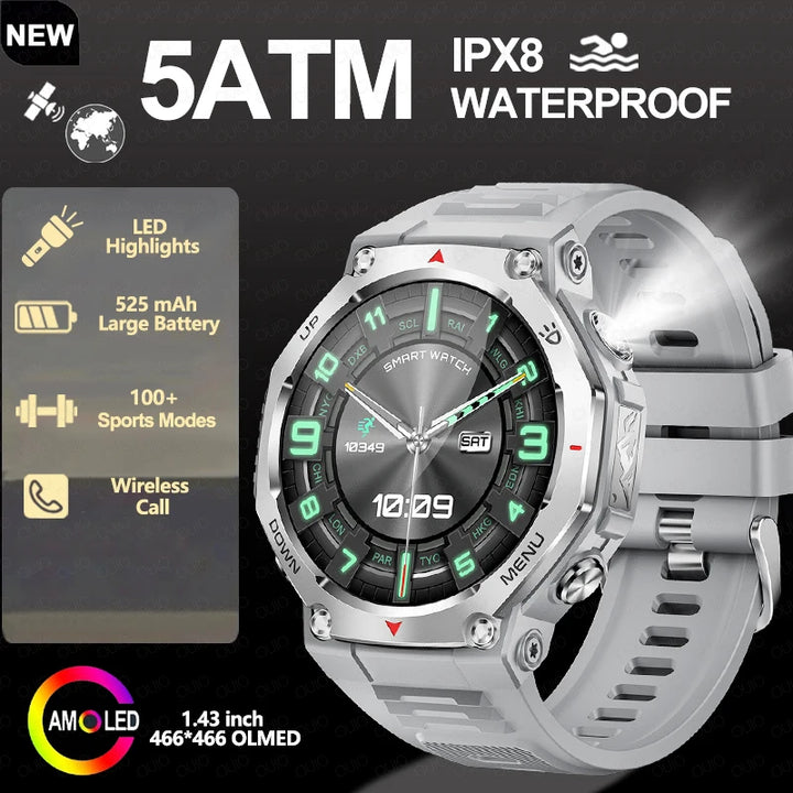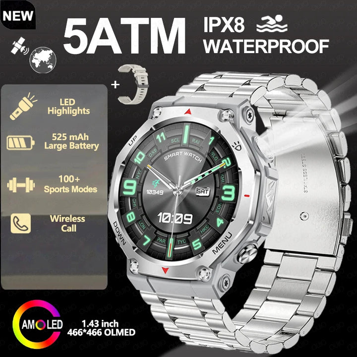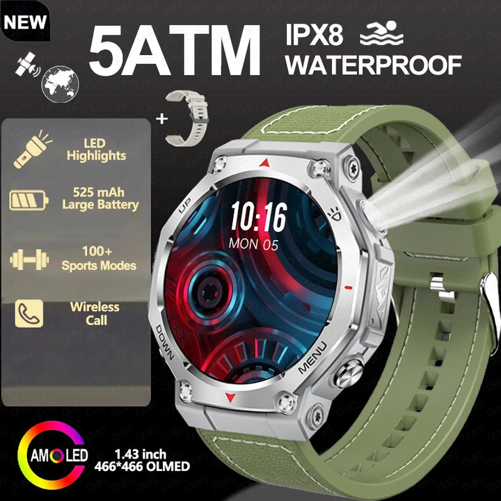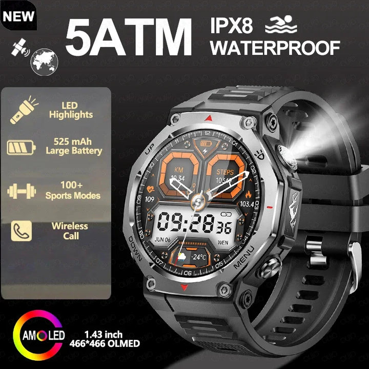 New Smart Watch Outdoor LED/UV Lights 525mAh Battery 100+Sports Mode Heart Rate 3ATM Waterproof Bluetooth Call Men Smart Watch