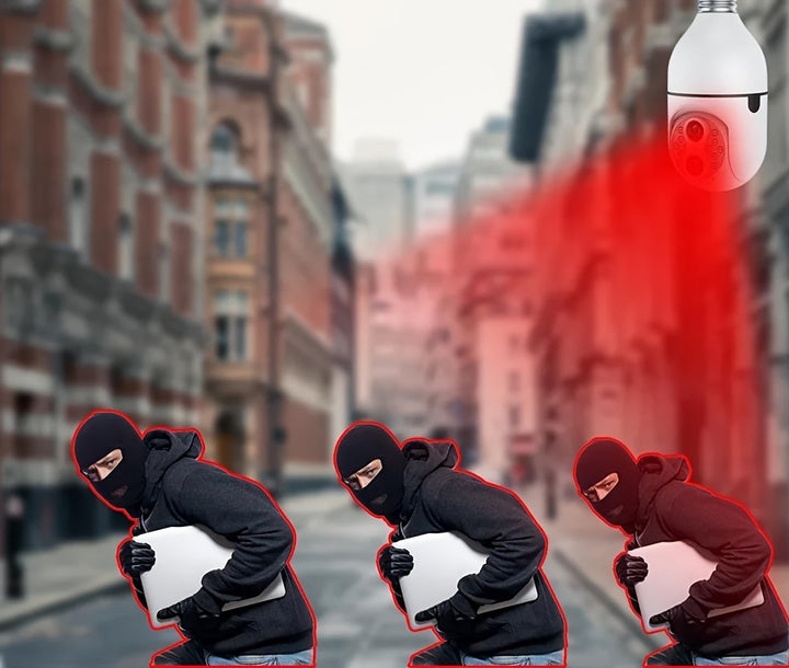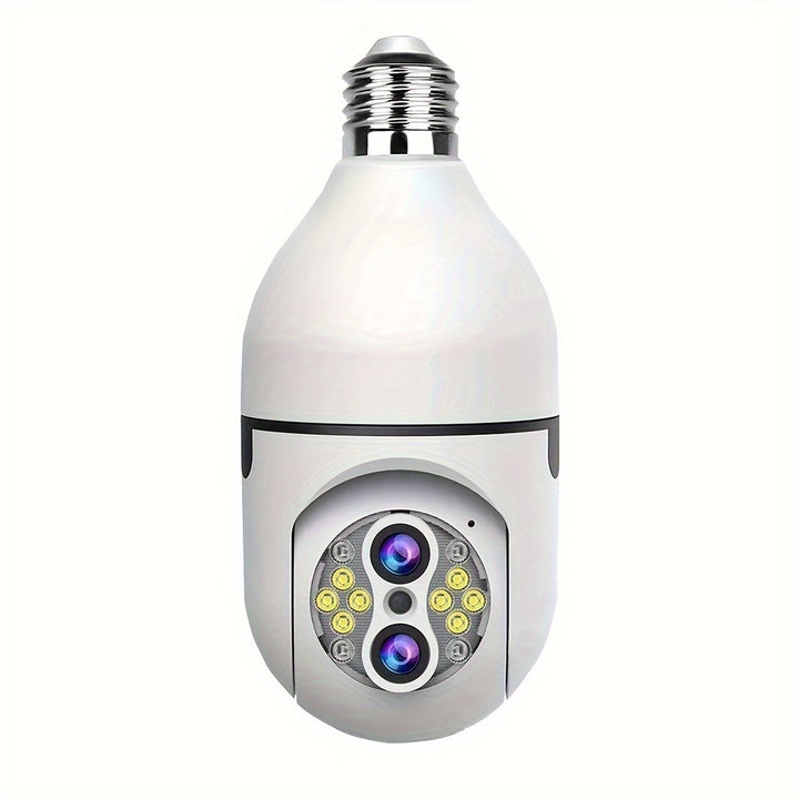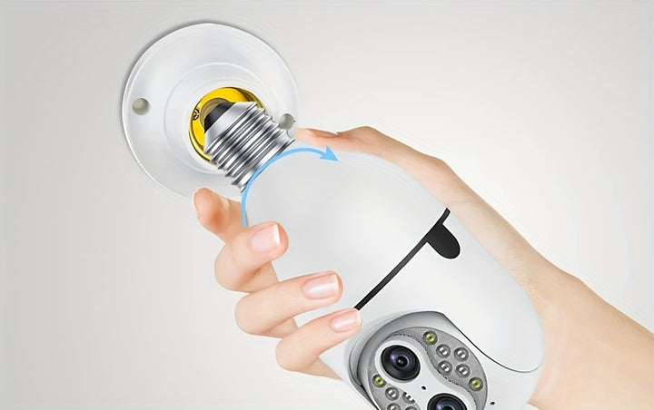 Wireless surveillance cameras with dual lenses that automatically track humans, providing security for babies, with a 10X PTZ zoom and 4K 8MP resolution, all housed in an E27 bulb design.
