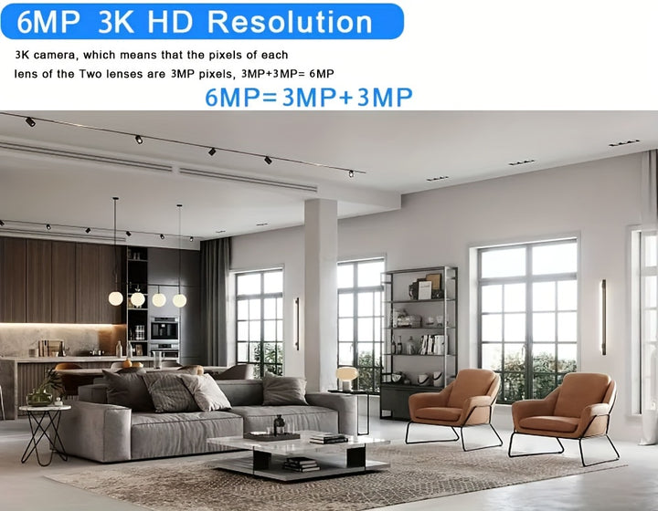 A high-definition display with 6 megapixels resolution. The 3K camera consists of two lenses, each with a 3-megapixel resolution. Combining 3MP + 3MP results in 6MP.