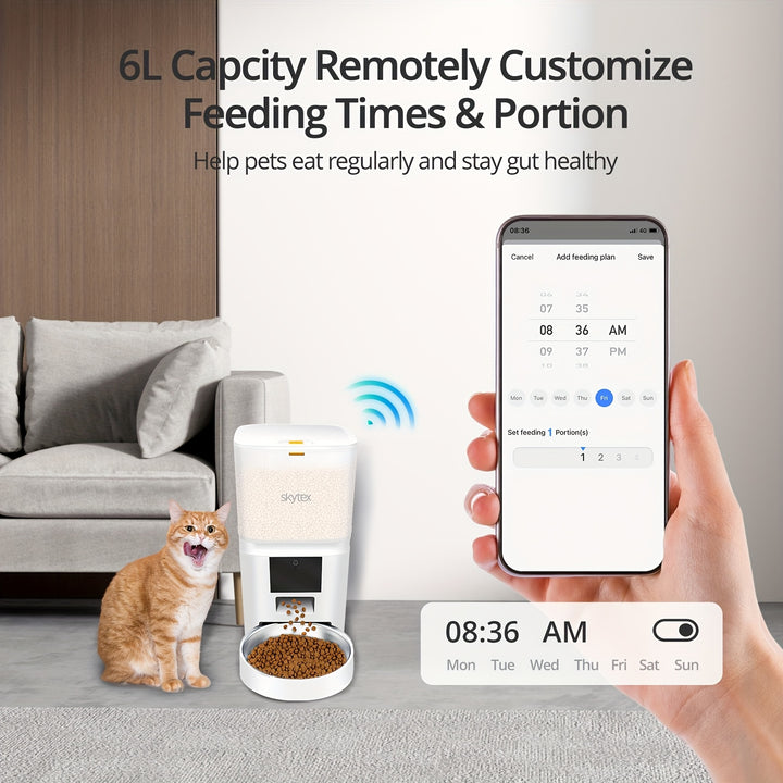Pet Feeder, An Automatic Feeder for Dogs, Cats And Other Pets At Home, Suitable for Dry Food, with A Diameter Of 3-18mm, A Large Capacity Of 1.59gal, 10 Times A Day, Intelligent Reminders, And Smart Home Helpers, Providing Th