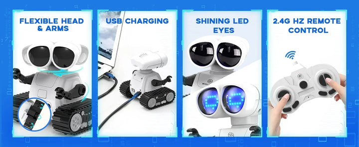 Rechargeable remote control robot toy with music, LED eyes, walkie talkie, children's robot toy, children's RC robot