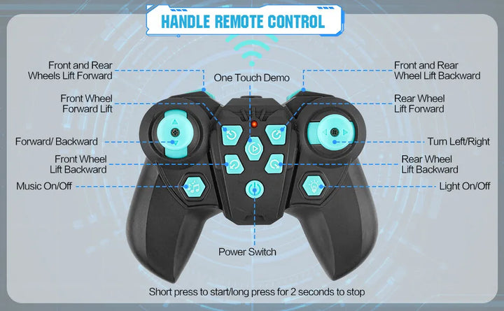 Easily perform 10 exciting moves like forward/backward walking, 360° spins, and dance routines — great for beginners learning RC toy control.