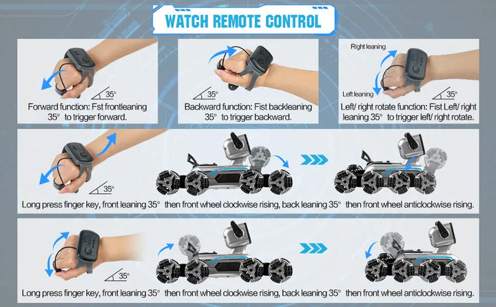 🧠 Dual Control Modes — Remote or Gesture Watch
