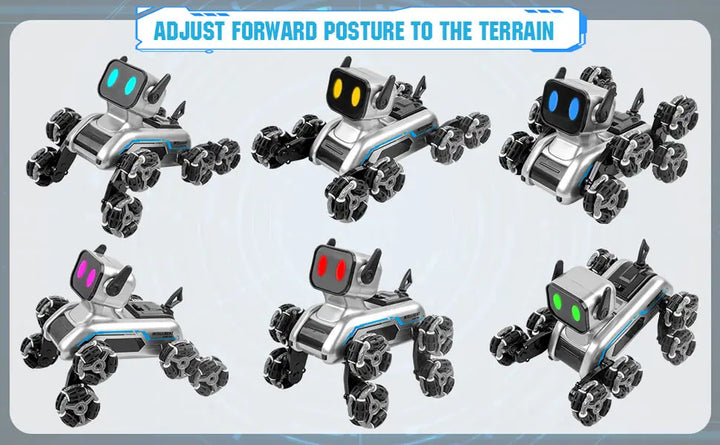 Equipped with eight wheels and powerful swinging arms, the robot dog can navigate various terrains like grass, deserts, rocks, stairs, and rough roads, providing an exceptional outdoor experience.