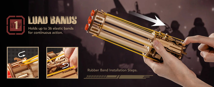 ROKR LQA01 – Dual-Trigger Gatling Rubber Band Gun 3D Wooden Puzzle