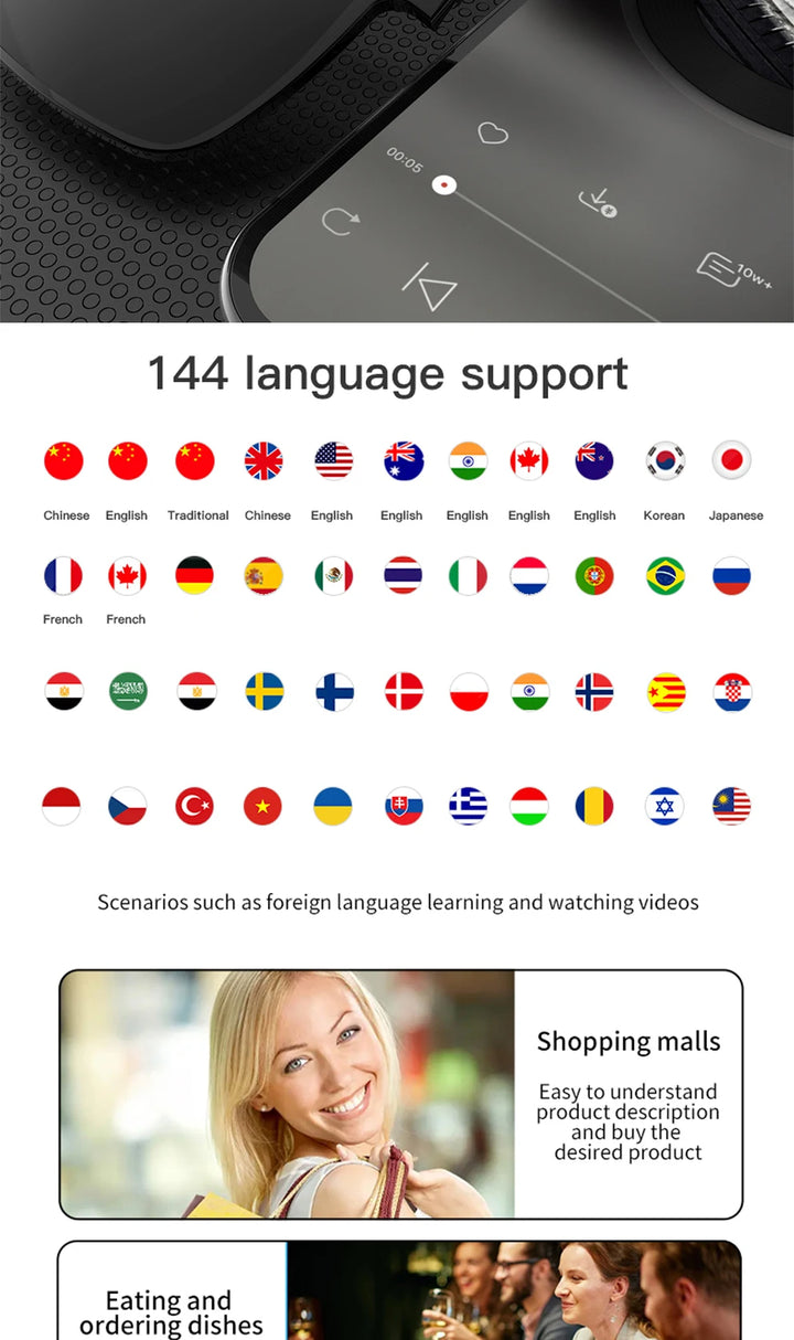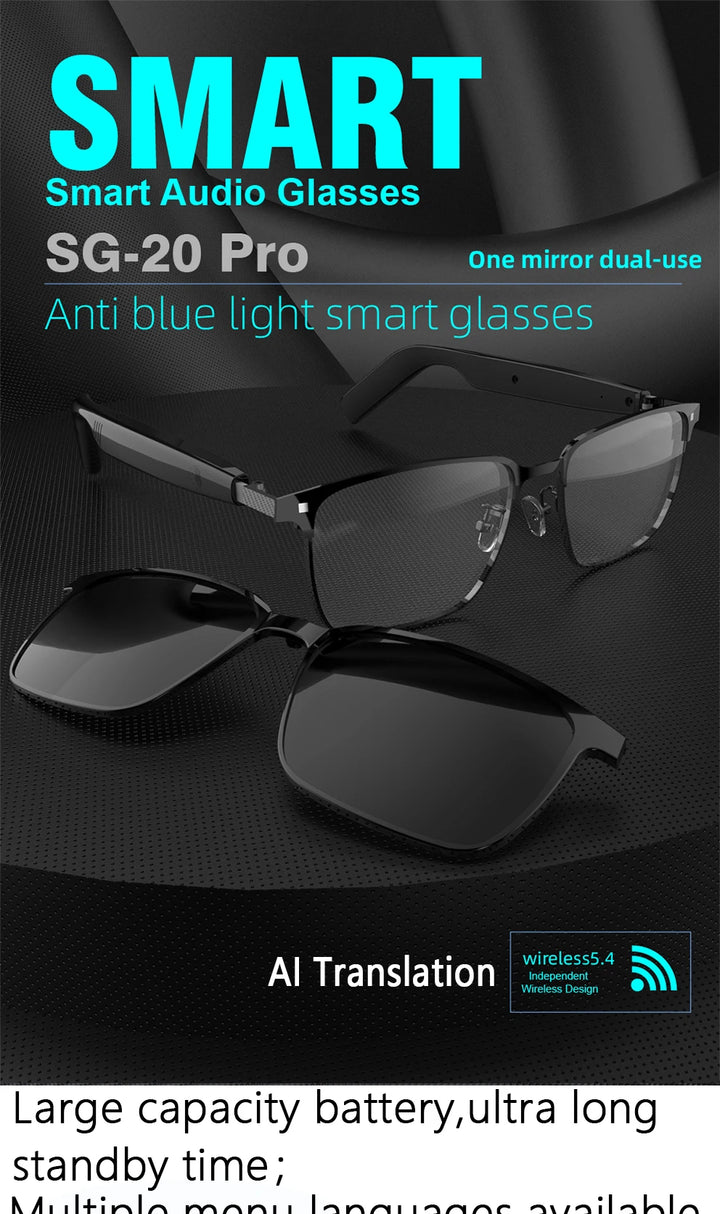 SG-20 Smart Glasses 144 Languages Online Translation Wireless Bluetooth Calling & Music Playback with Magnetic Lenses Included
