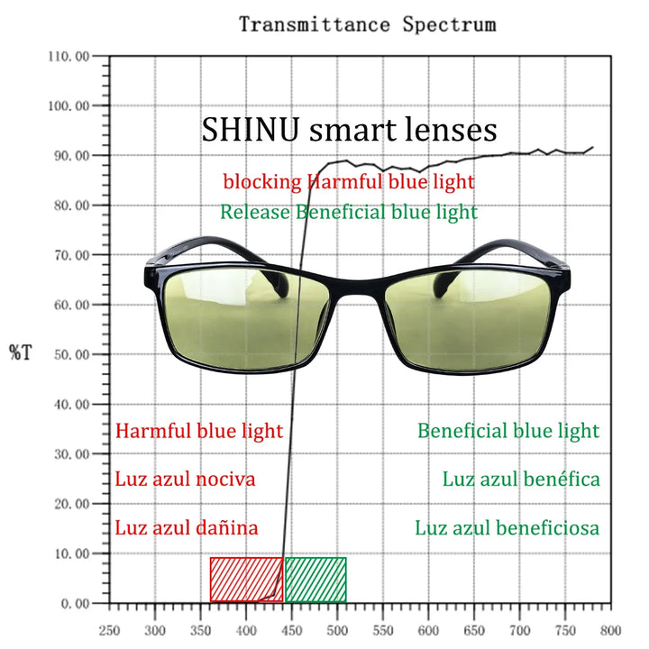 SHINU smart lens reading glasses for man blocking Harmful blue light Release Beneficial blue light EMS TR90 glasses for men