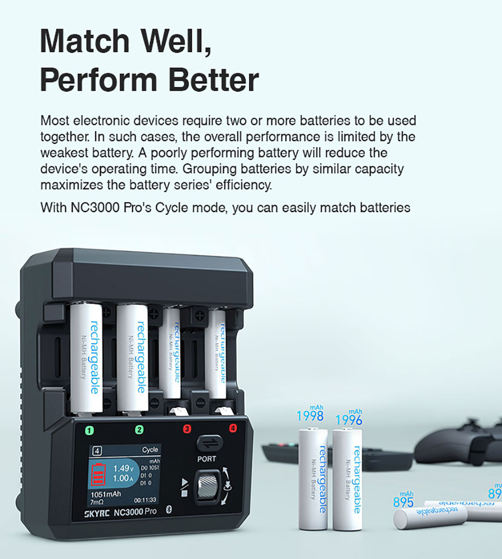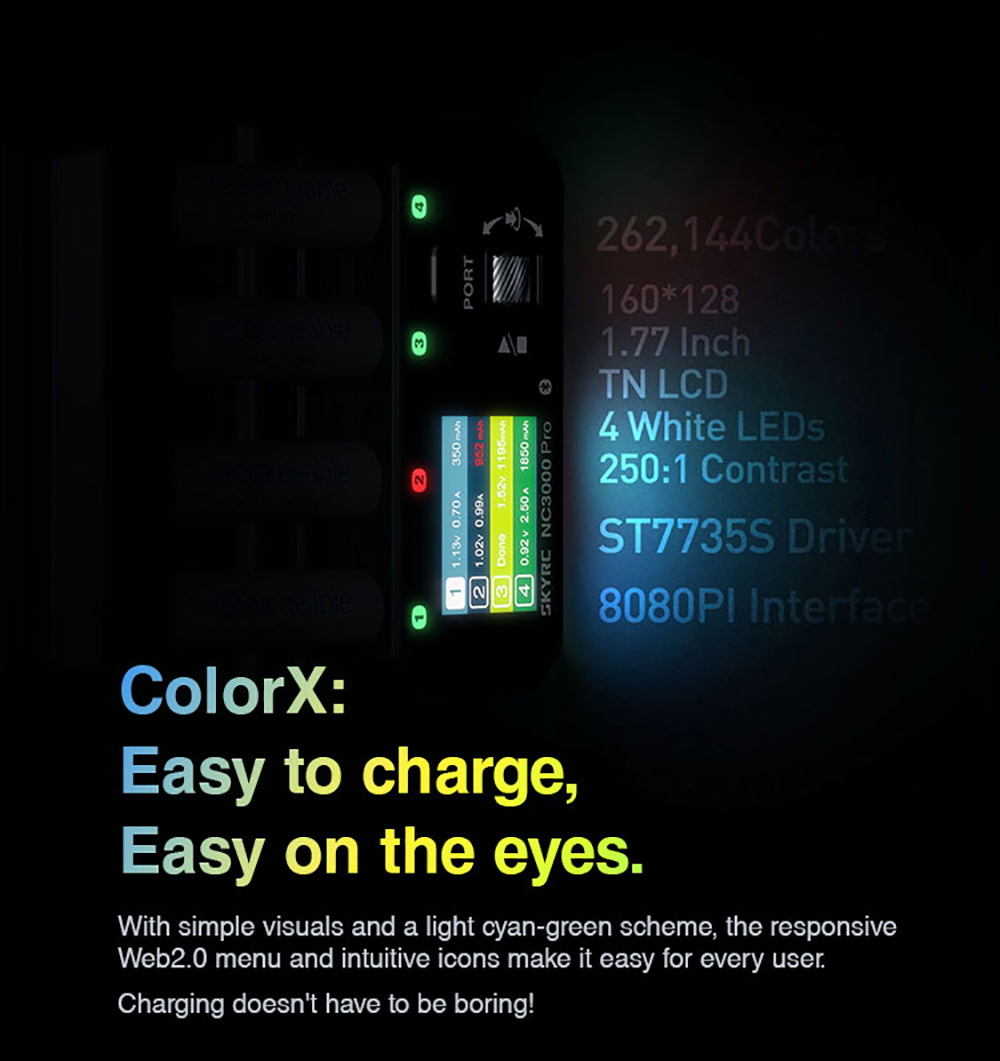 2025 NEW NC3000 Pro Battery Charger With four independent AA/AAA(NiMH/NiCd) slots, can simultaneously charge up to four batteries.Large LCD Color Screen, All kinds of information are clear at a glance.