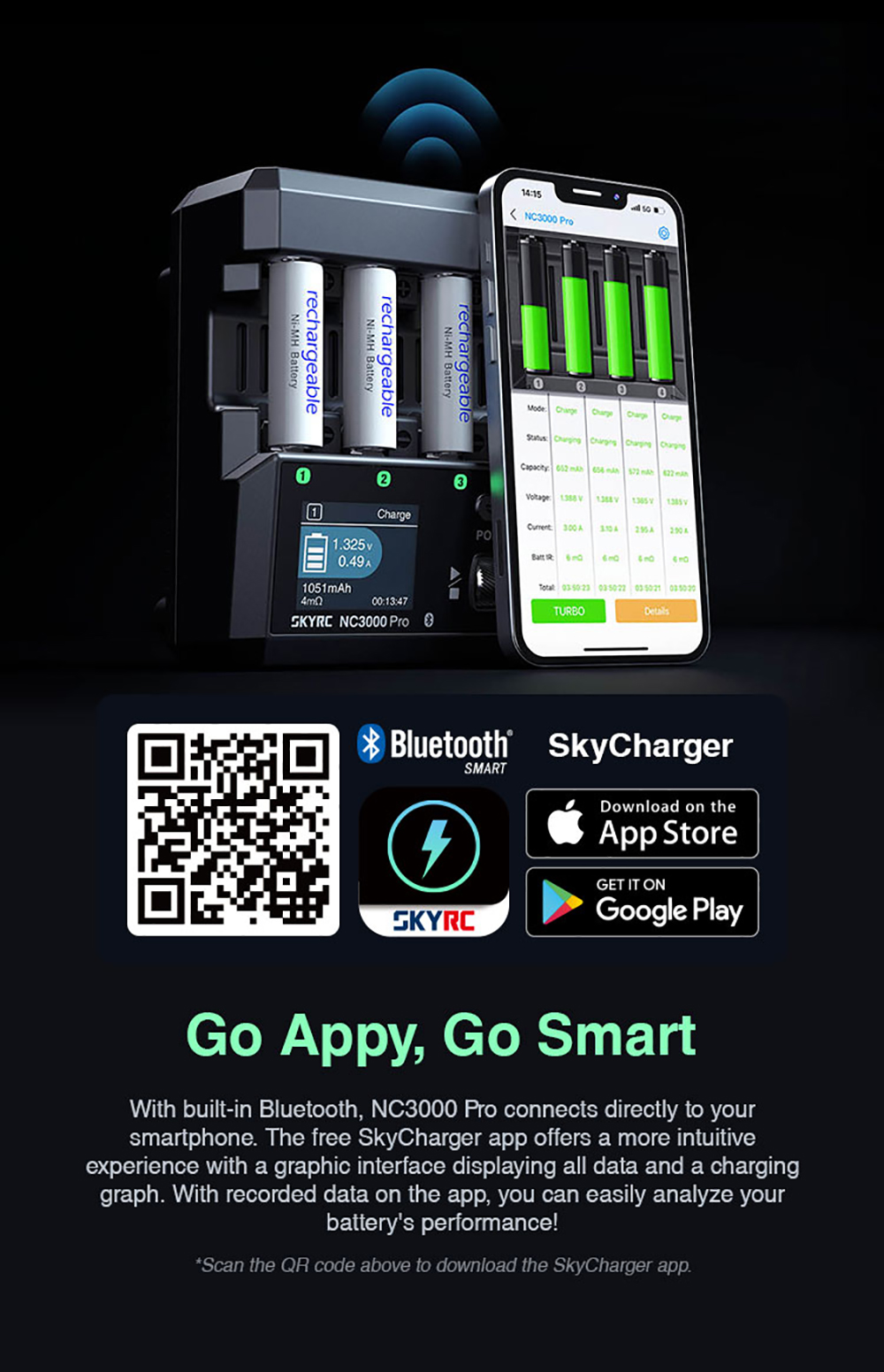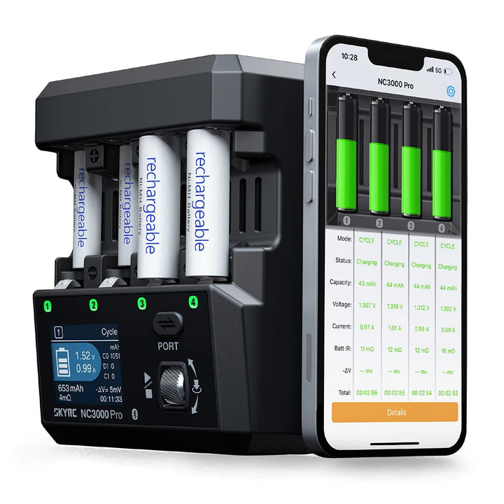 SkyRC NC3000 Pro NiMH NiCd Battery Charger PD/QC AA/AAA Smart Battery Charger 4-slot LED Screen APP Control Charger Discharger