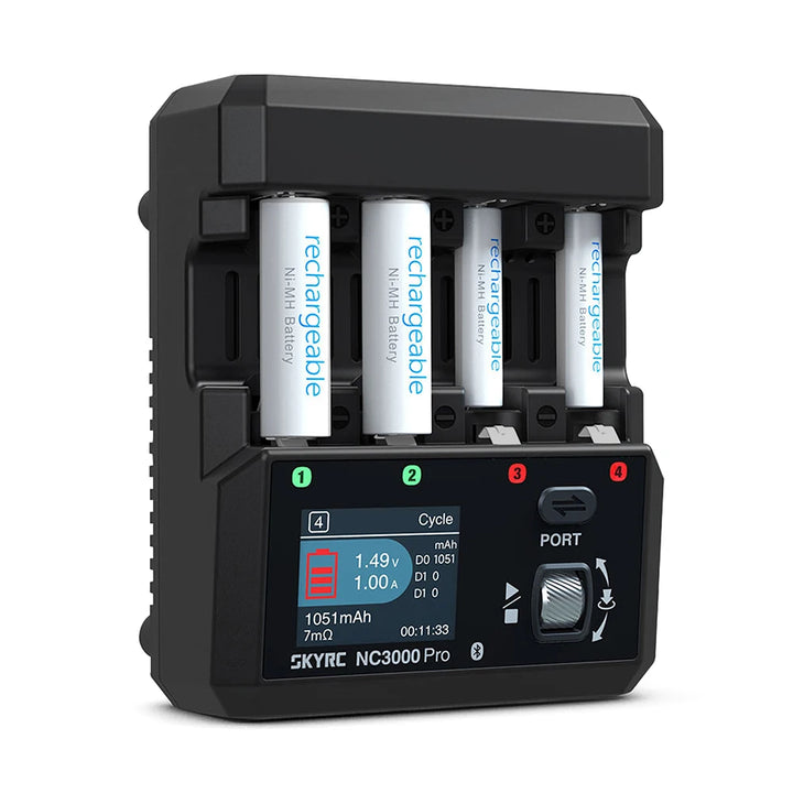 NEW SkyRC NC3000 Pro NiMH NiCd Battery Charger PD/QC AA/AAA Smart Battery Charger 4-slot LED Color Screen APP Smart Control 6 Modes Charger Discharger