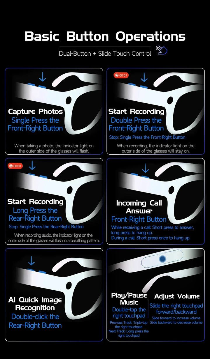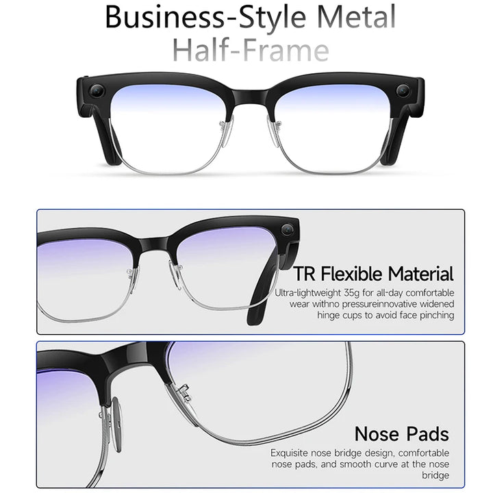 Smart AI Translation Smart Glasses Take Photos Recognizing Objects 4K Camera Bluetooth Music Call Intelligent Recording Glasses