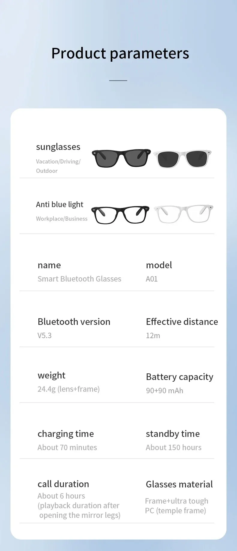 White sunglasses, Black Blue Light, White Blue Light, Black sunglasses |