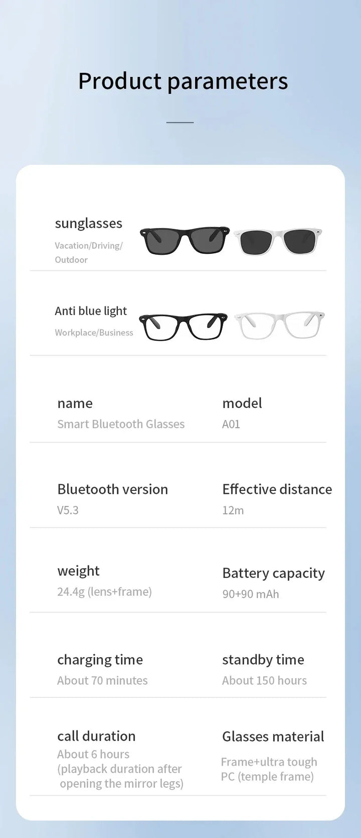 mart Glasses Specifications: