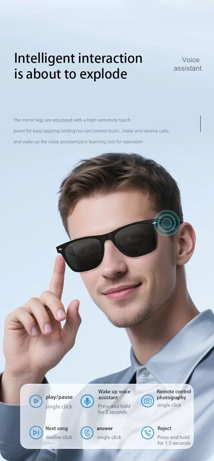 Smart Glasses Bluetooth Call Outdoor Sports Headphones AI Voice Navigation Photochromic Lens Waterproof Anti-UV Smart Sunglasses