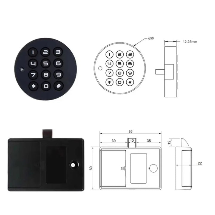 Unlocking panel size: diameter 50mm, thickness 12.25mm