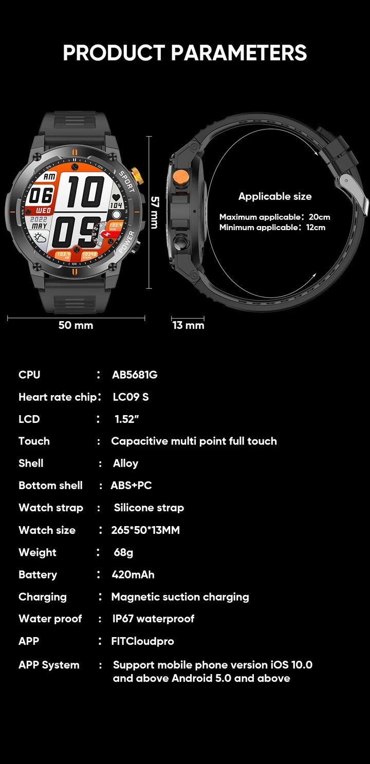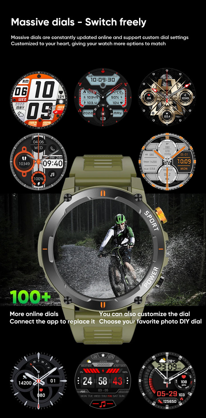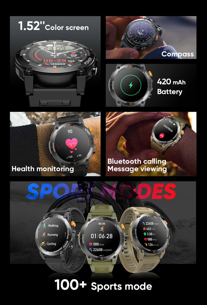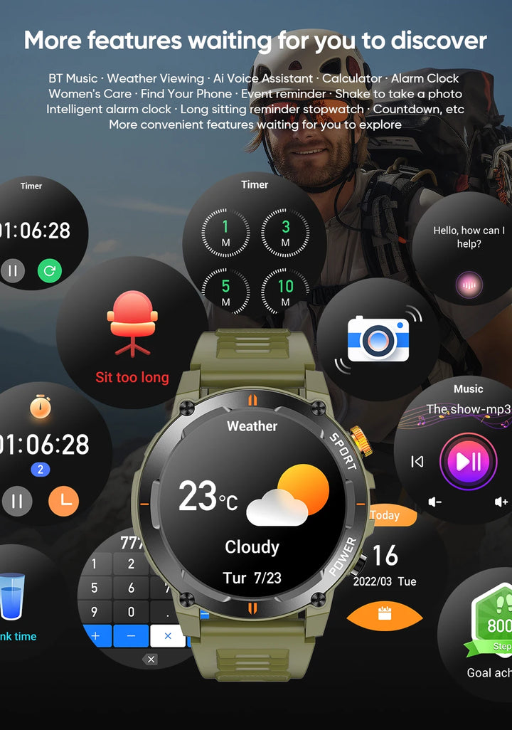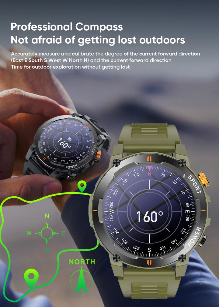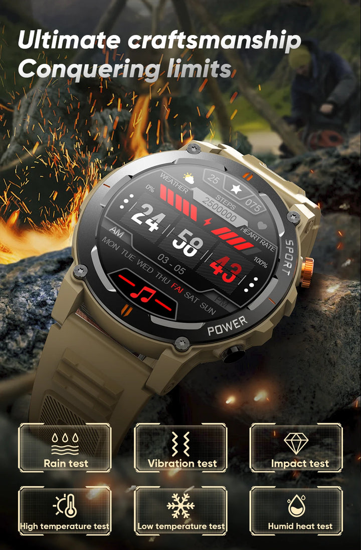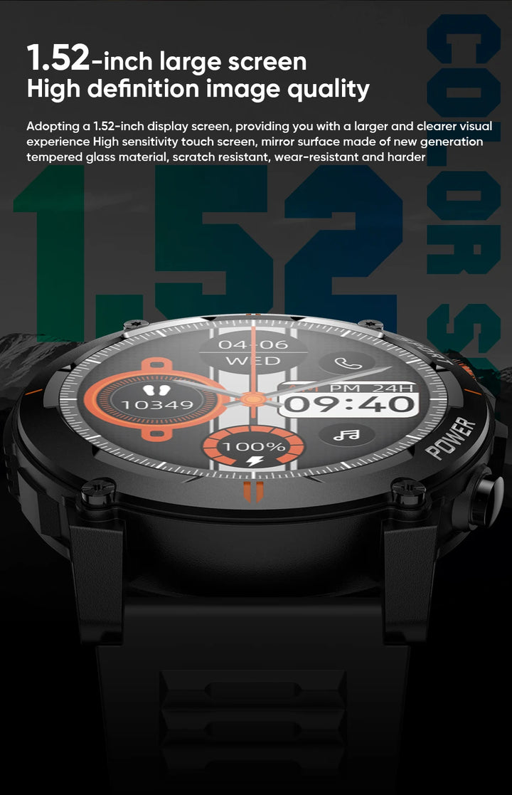 With a professional waterproof grade, this smartwatch is perfect for outdoor activities, ensuring durability in any weather.