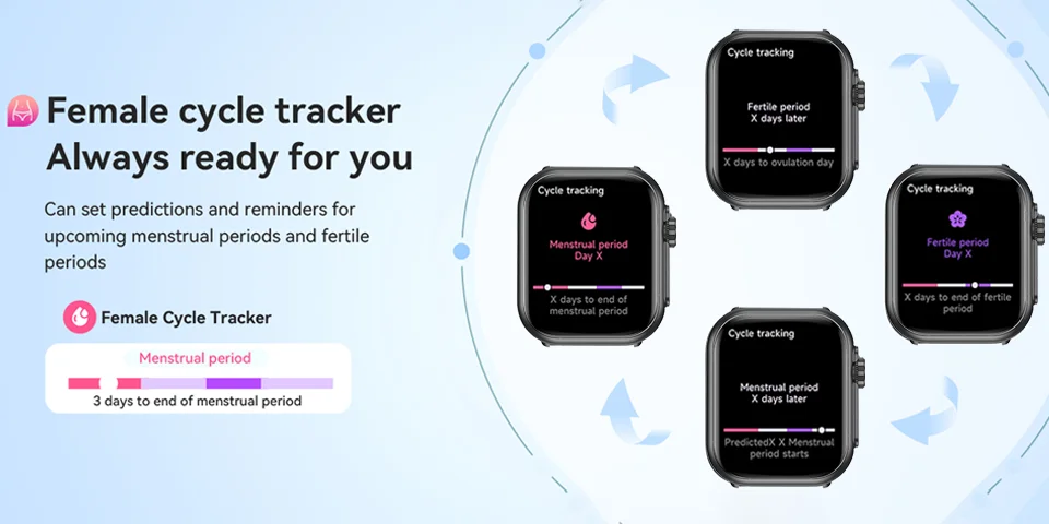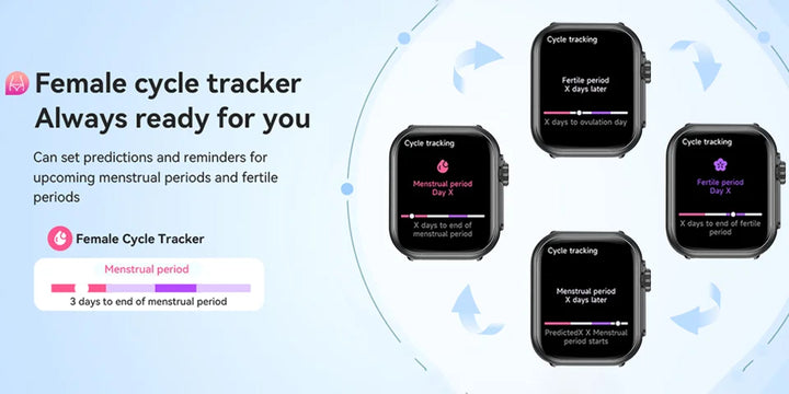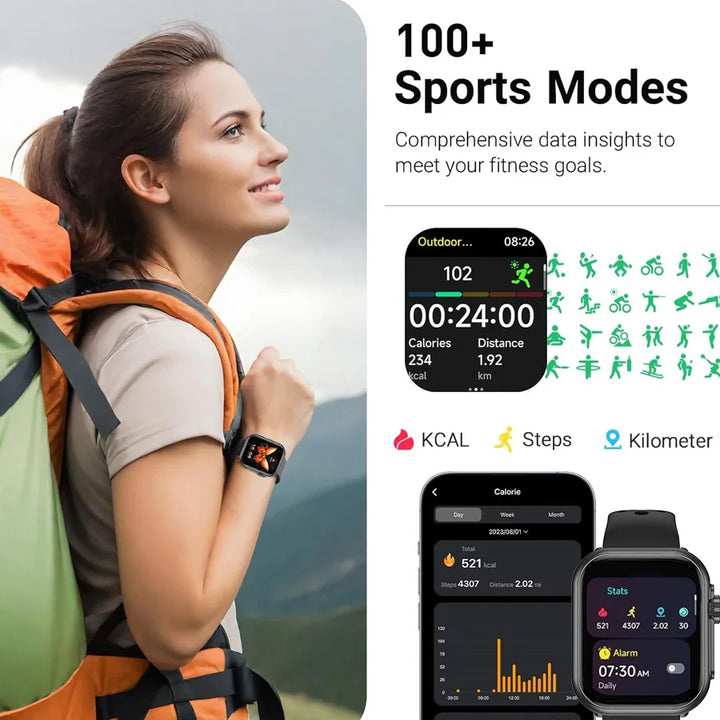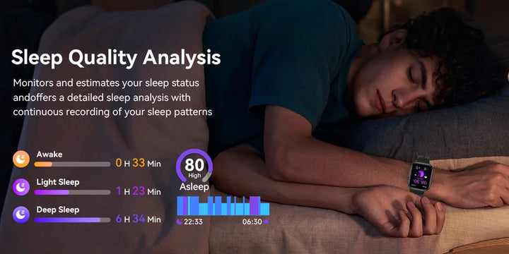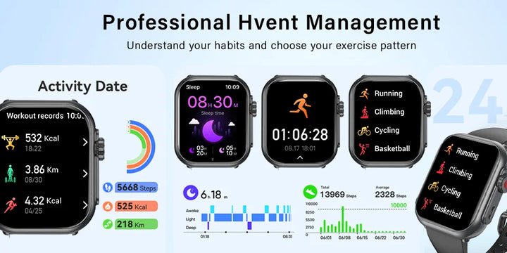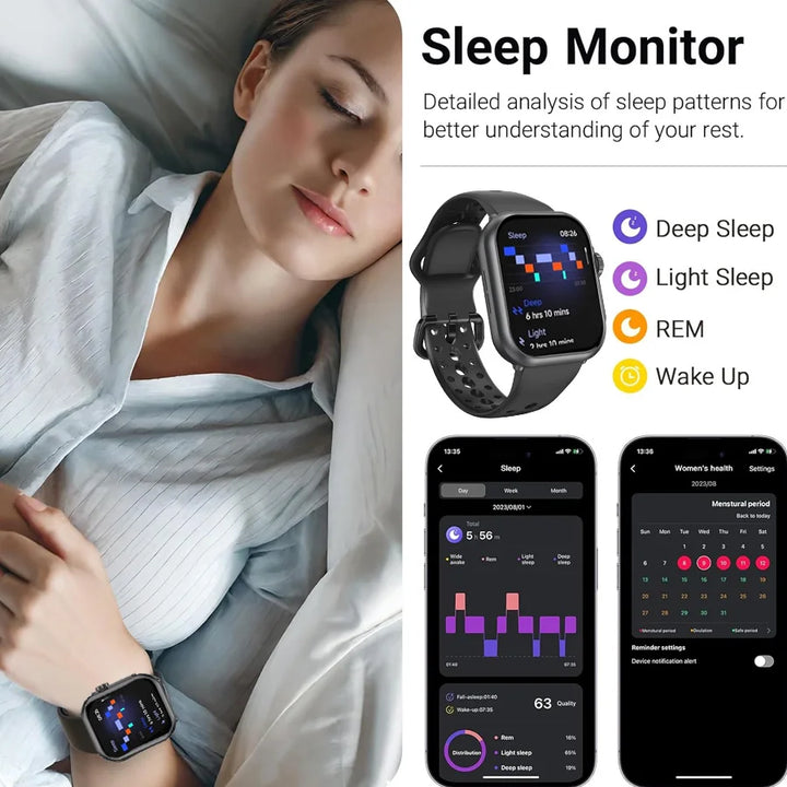 ➤Health monitoring: Real-time heart rate, SpO2 (blood oxygen) level measurement,women's physiological cycle record, sleep score, calorie and calorie tracking.