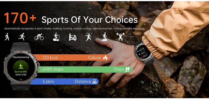 Automatically recognizes 6 sport modes, walking, running, outdoor cycling, ellptical machine, rowing machine and static