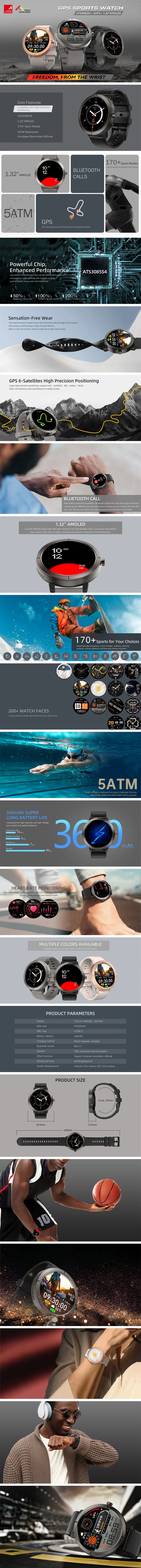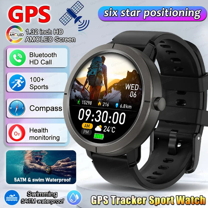Smart Watch for Women GPS 6-Satellites 1.32” HD AMOLED Display Built-in GPS Bluetooth Call Sports 5ATM Waterproof Smartwatch ma