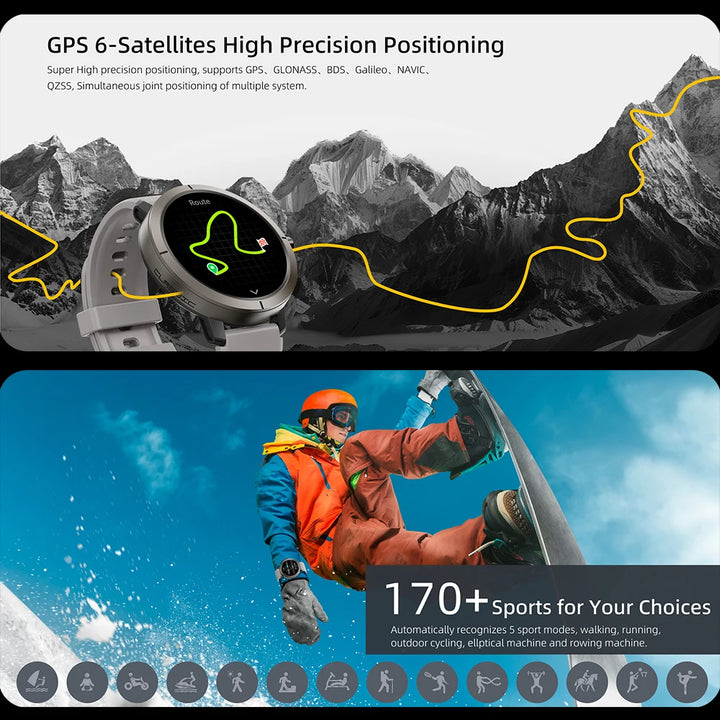 Smart Watch for Women GPS 6-Satellites 1.32” HD AMOLED Display Built-in GPS Bluetooth Call Sports 5ATM Waterproof Smartwatch Man