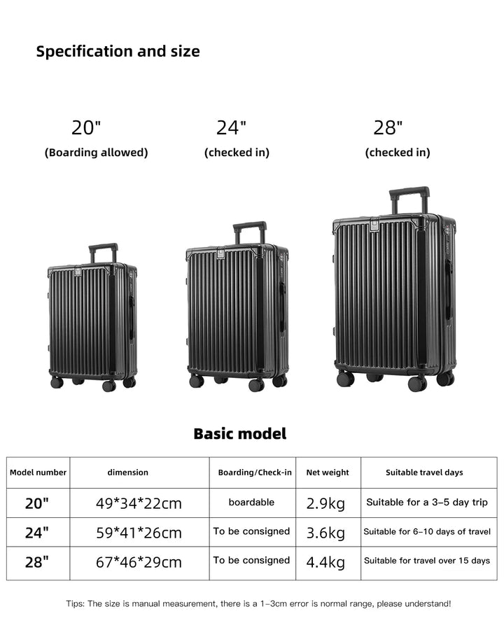 SUSHIMU Suitcase Travel Suitcase Men 20 24 26 Carry-On Luggage Women PC Frame Trolley Case